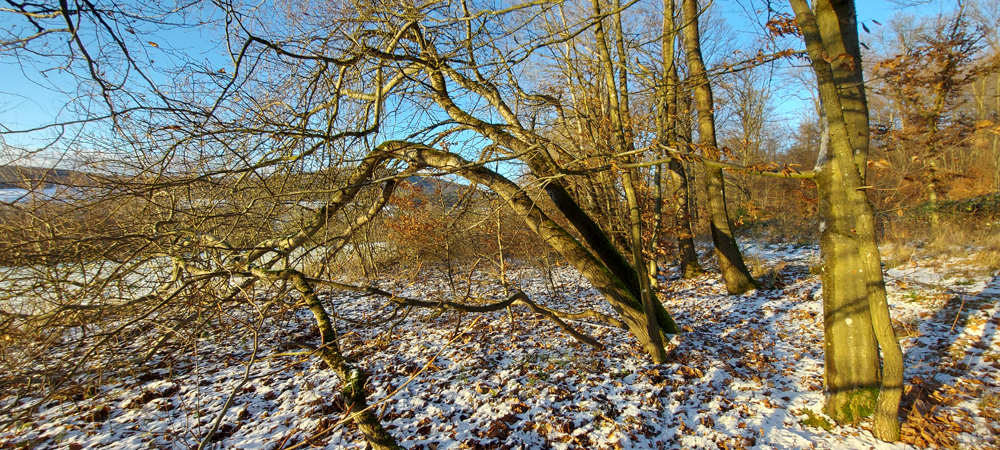 Am Ortseingang von Fellingshausen (von Rodheim kommend) stehen viele Espen. Am Waldrand oberhalb gibt es ein gutes Beispiel für die Widerstandsfähigkeit und den Neuaustrieb. Einige Stämme waren vor Jahren schon umgebrochen. Sie sind aber bogenförmig ausgetrieben und haben Ausläufer gebildet. Unten drunter ließe sich im Sommer wunderbar spielen. Aber es ist eher selten, dass dort oben noch Kinder umherstreifen. Schade!